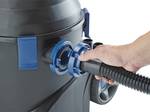 Pompe d'eau saleLe réservoir est vidé par la pompe d'eau sale intégrée. Ceci permet d'évacuer la vase de manière flexible. | Sachet-filtre amontLes particules de plus grande taille, comme les cailloux ou les feuilles sont retenues dans le réservoir. Une fermeture éclair rend le vidage particulièrement confortable. Pour retenir les particules plus petites, > 1 mm, un sachet-filtre supplémentaire fourni est adaptable sur la sortie (ne convient pas à la vase du bassin). |